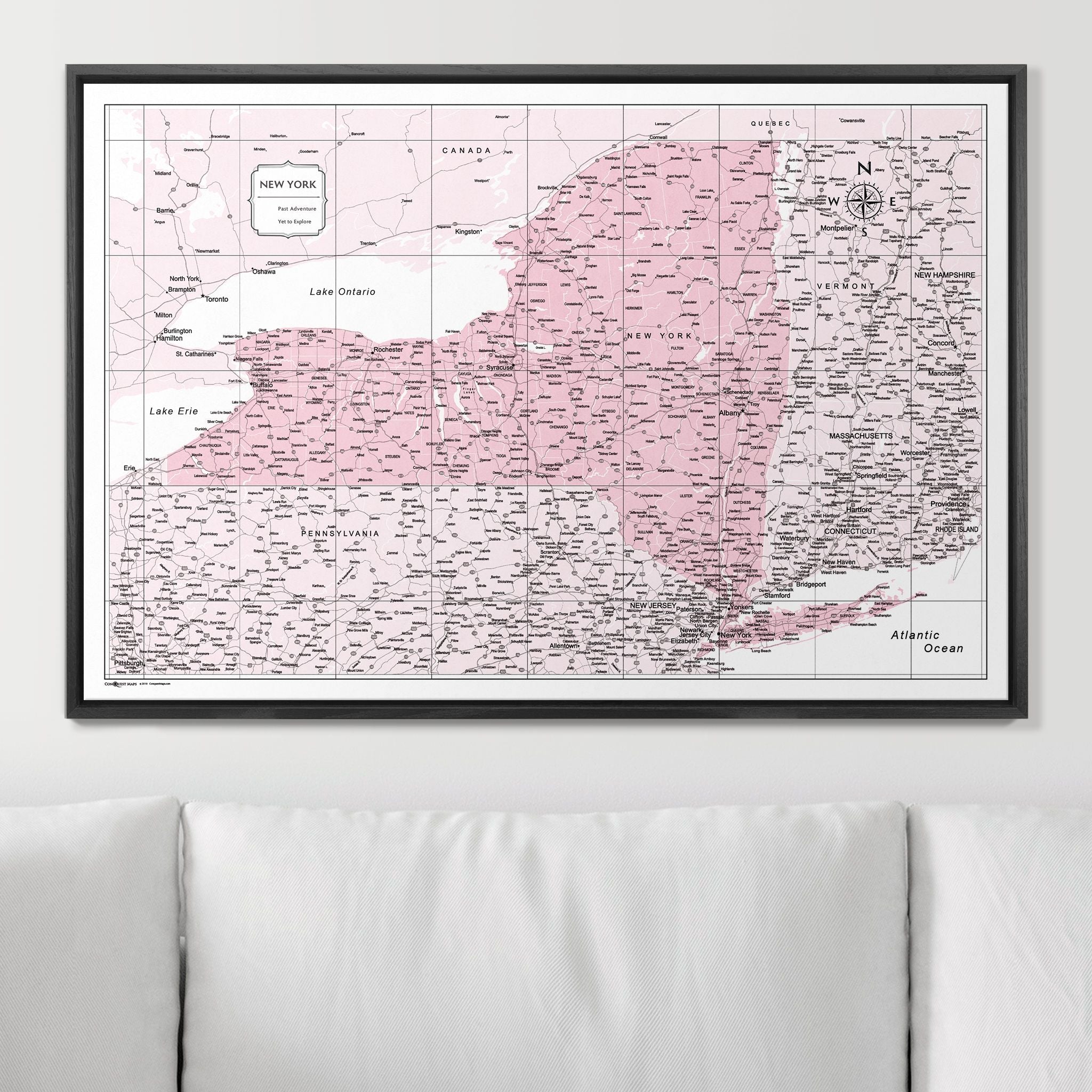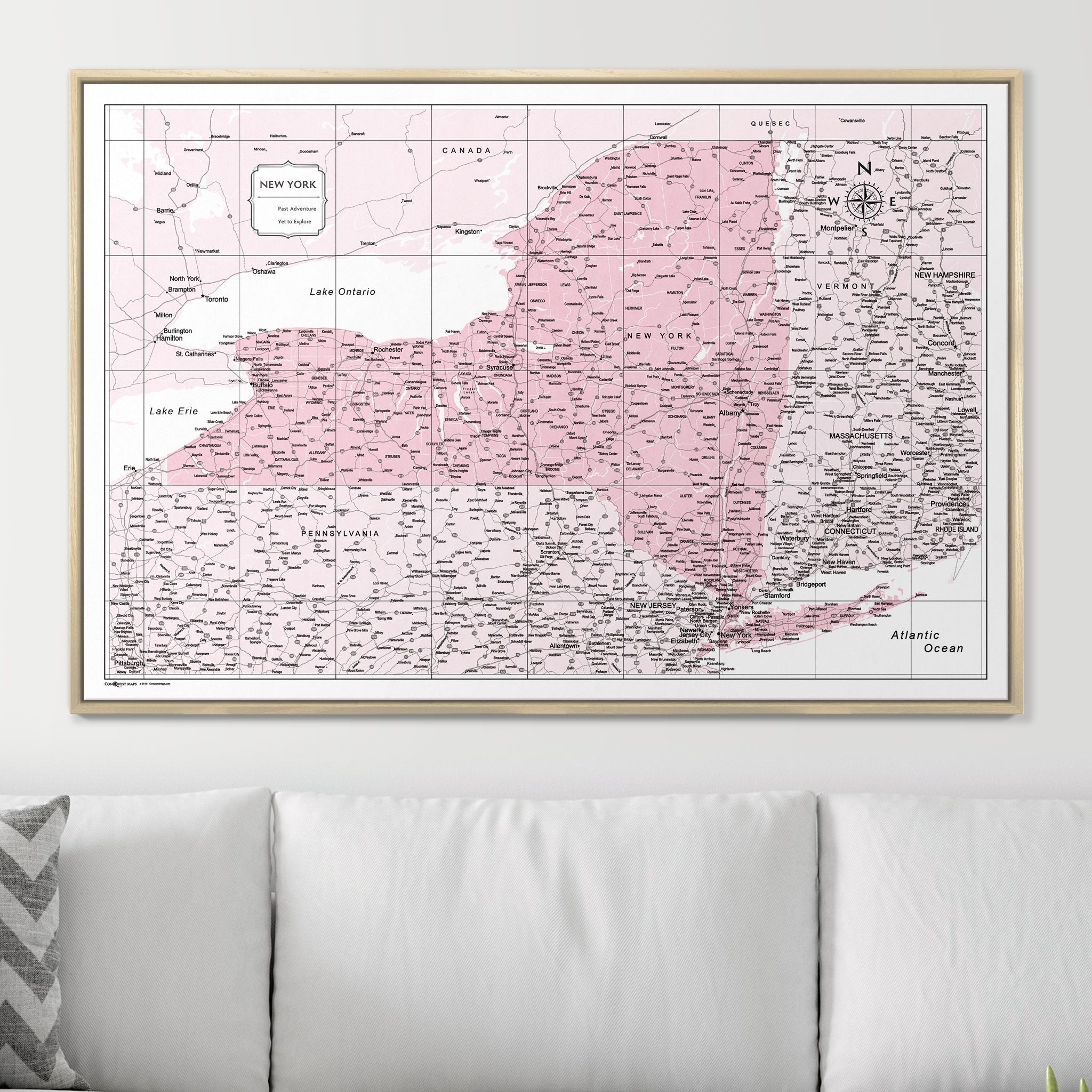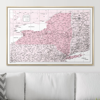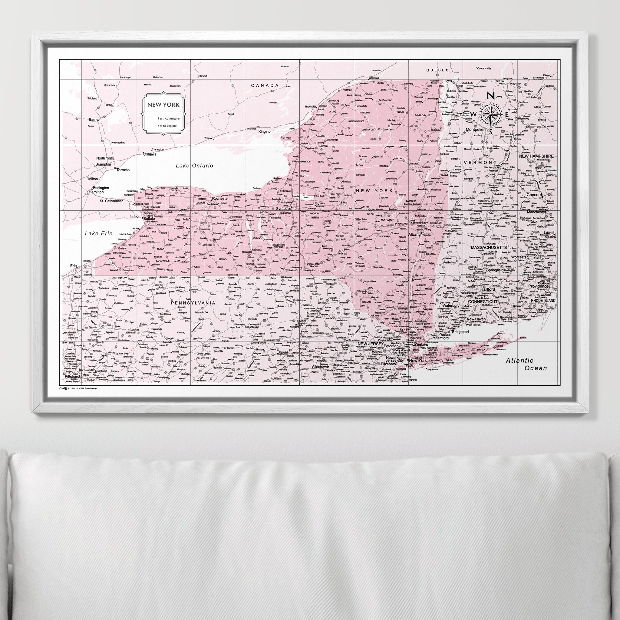 Push Pin New York Map (Pin Board) - Pink Color Splash
