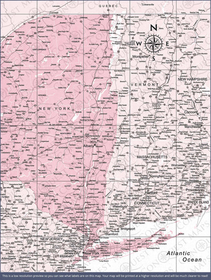 Push Pin New York Map (Pin Board) - Pink Color Splash