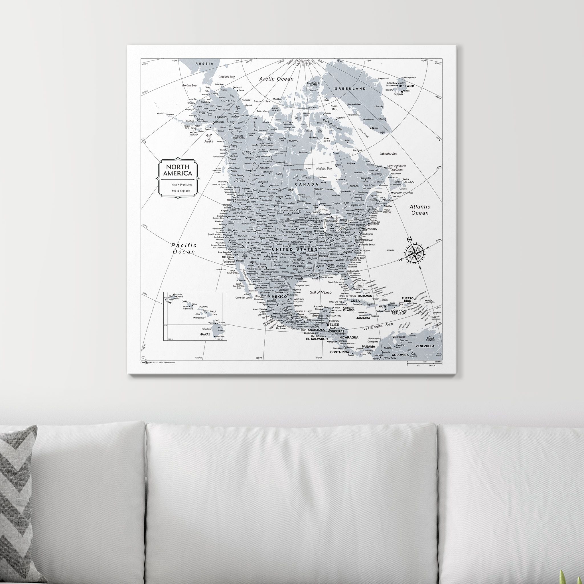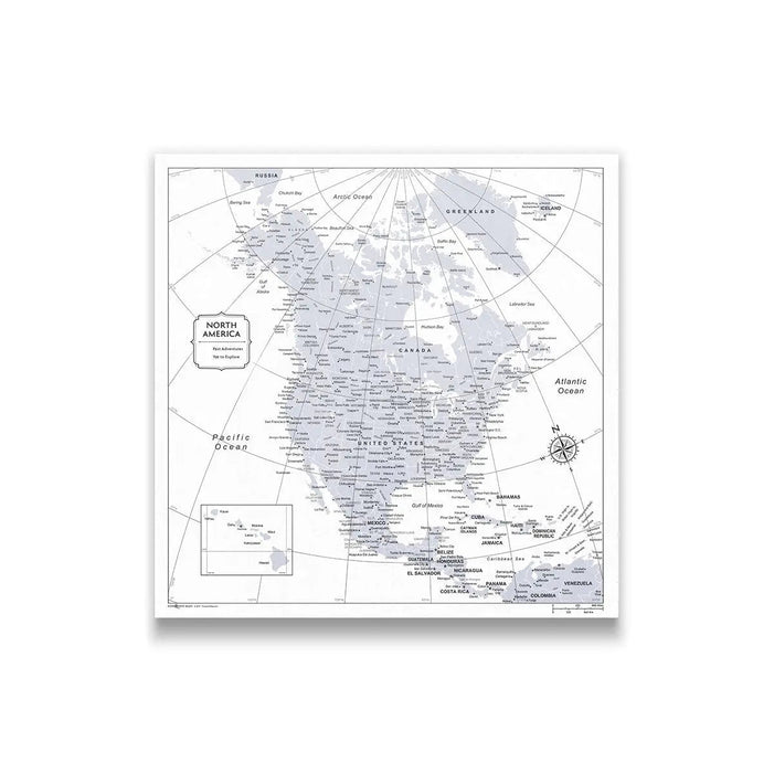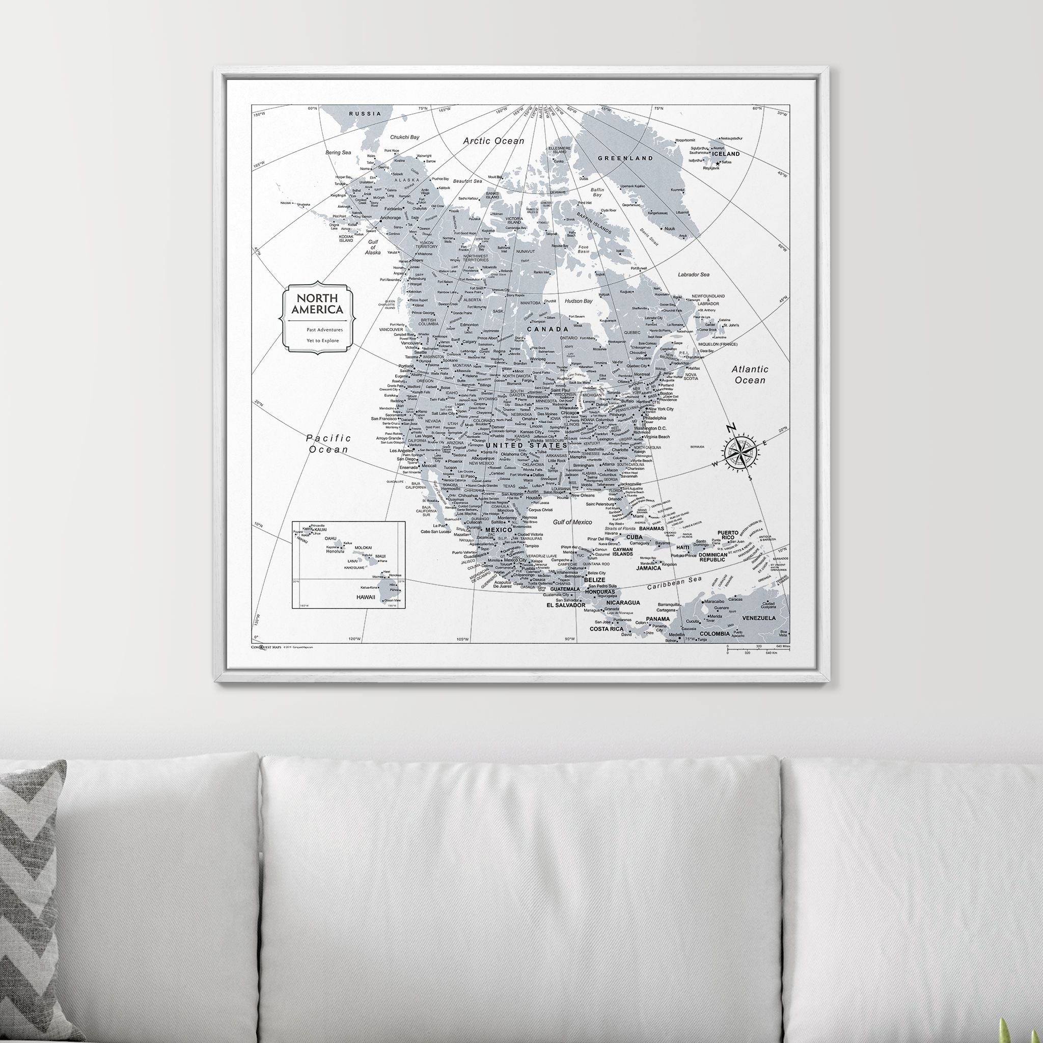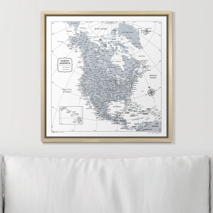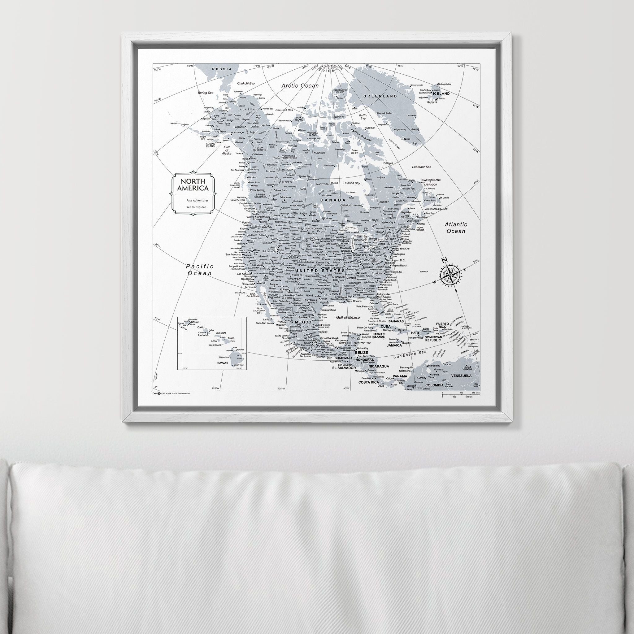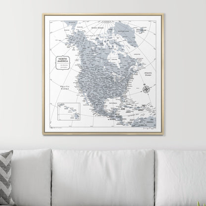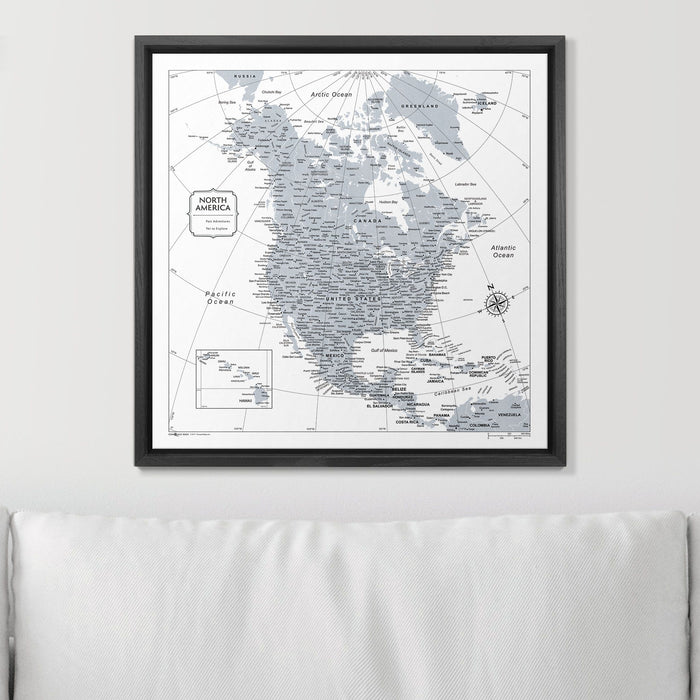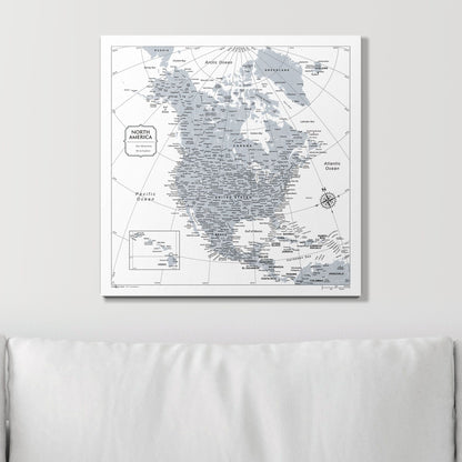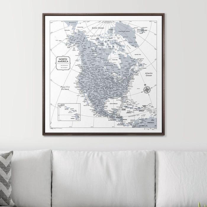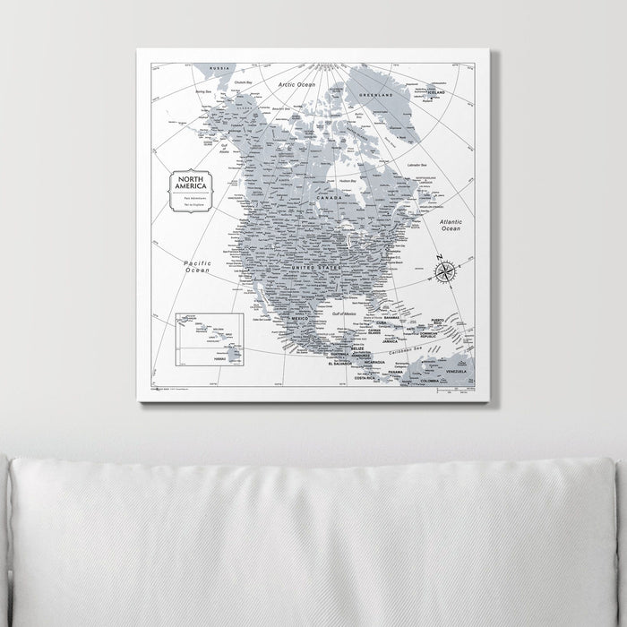 Push Pin North America Map (Pin Board) - Light Gray Color Splash