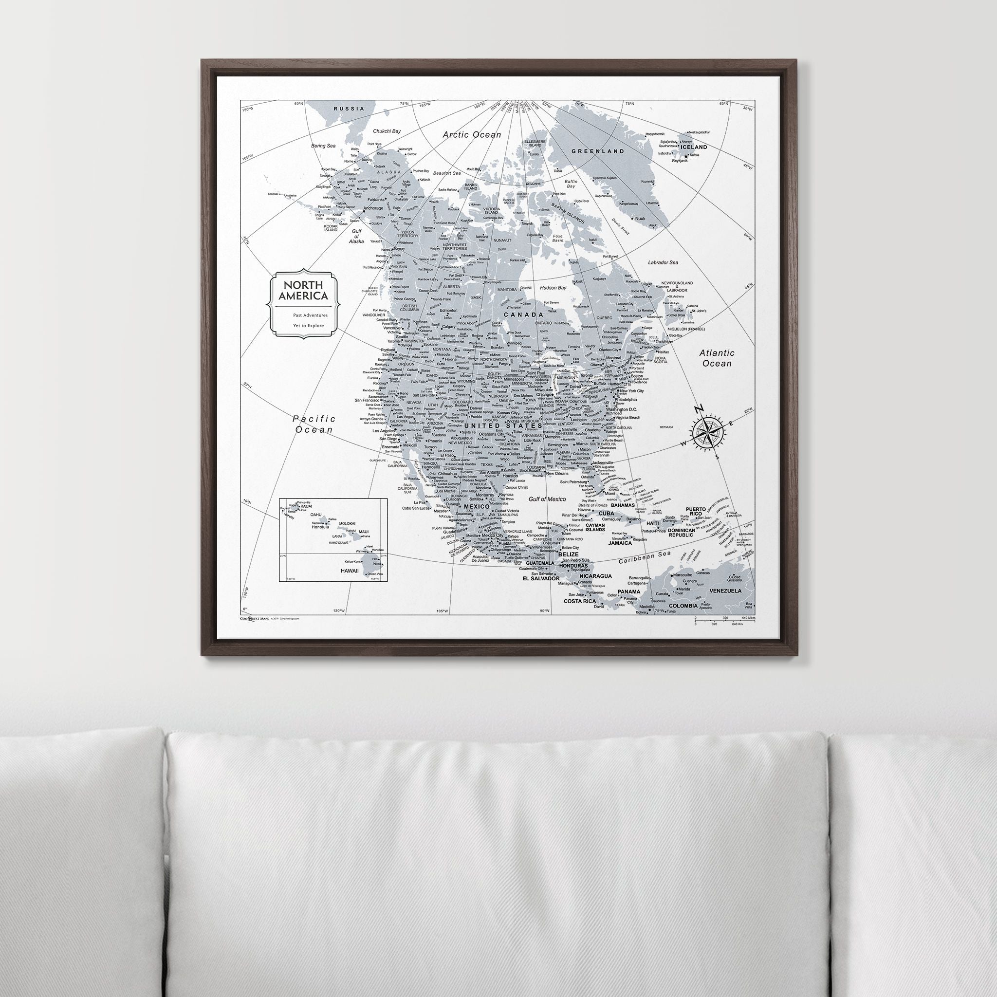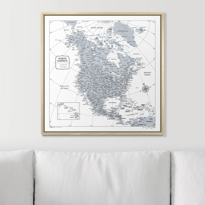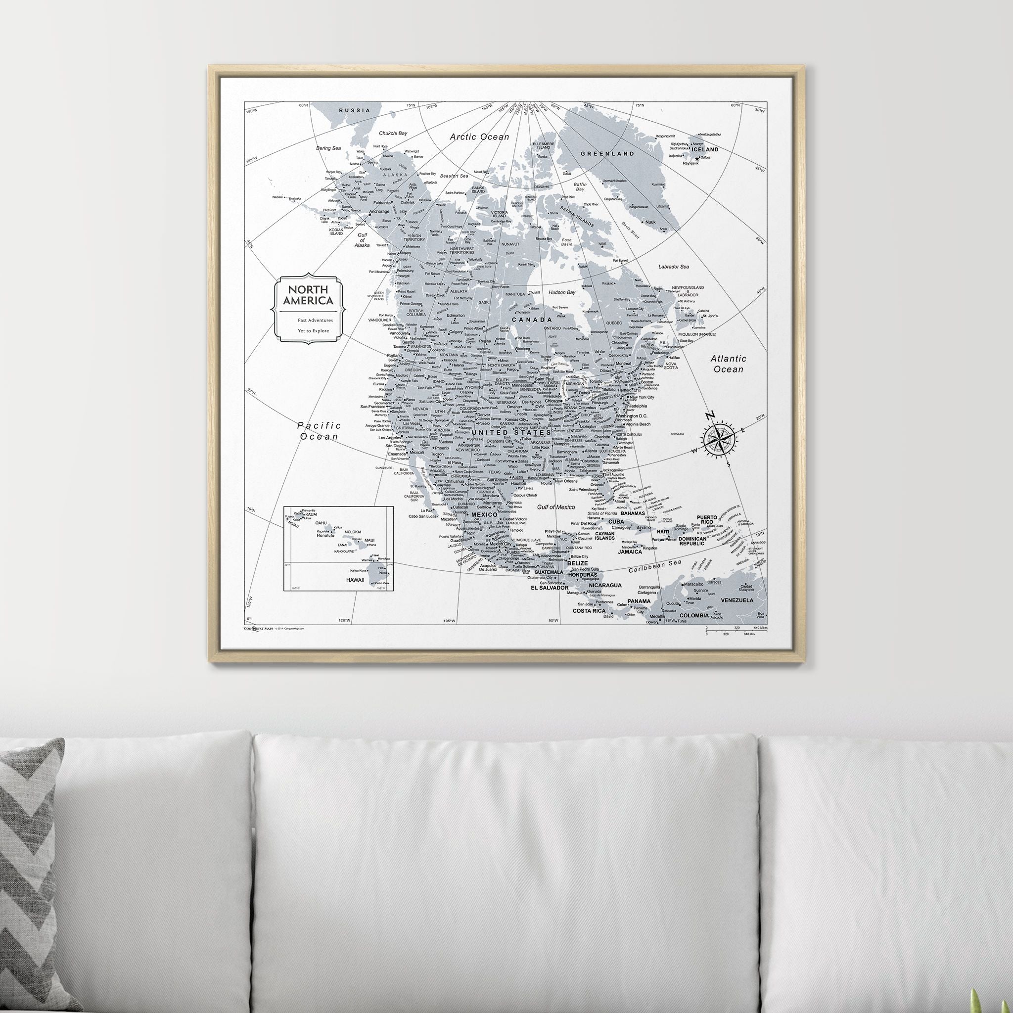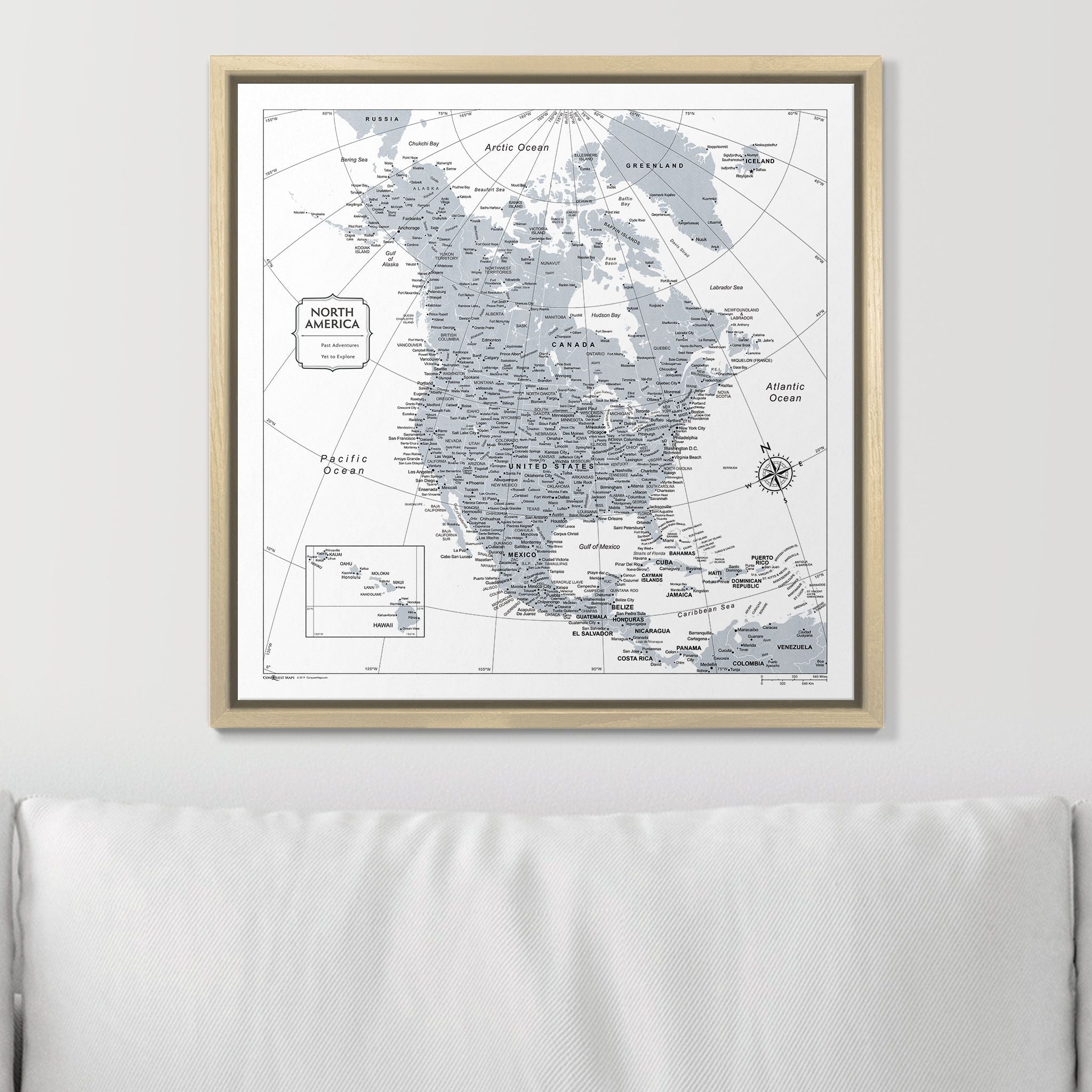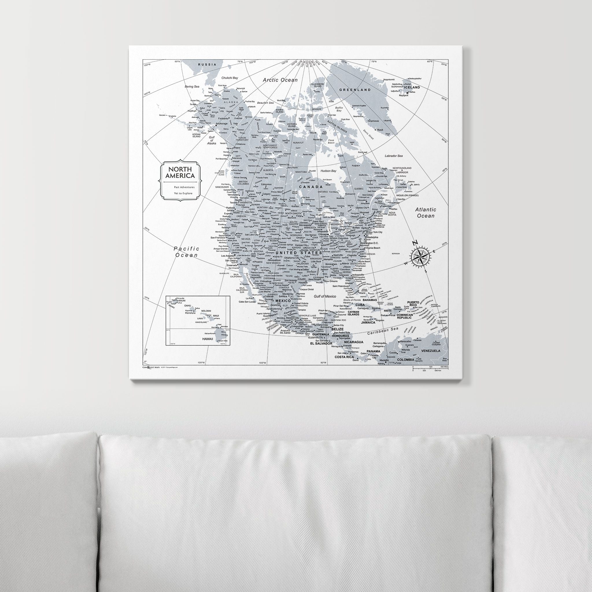 Push Pin North America Map (Pin Board) - Light Gray Color Splash