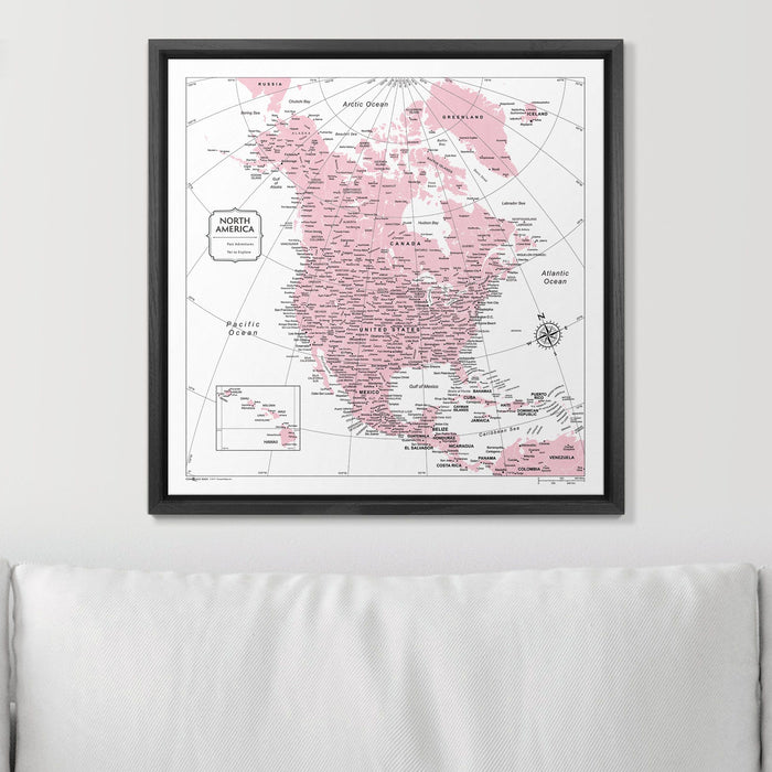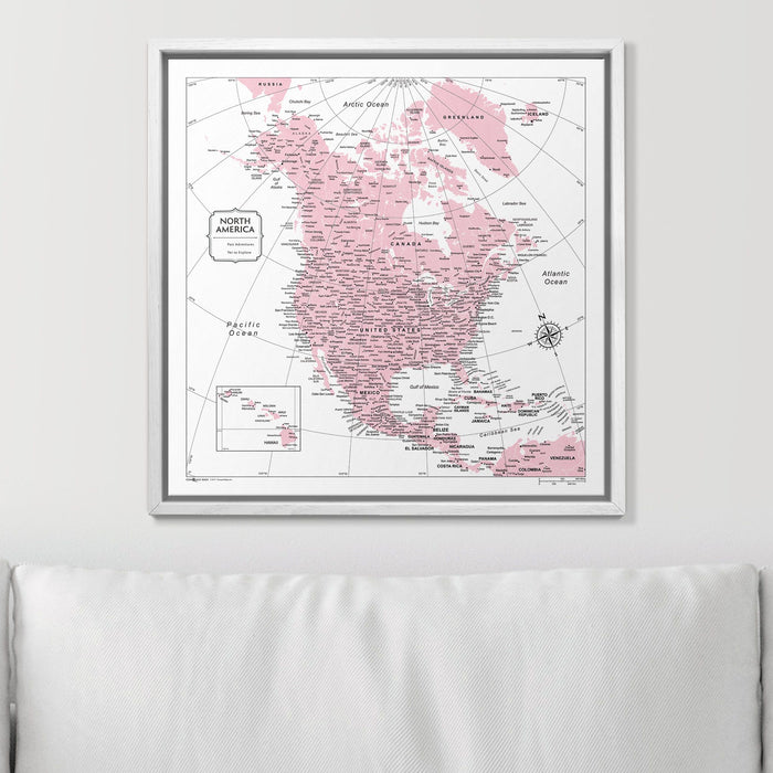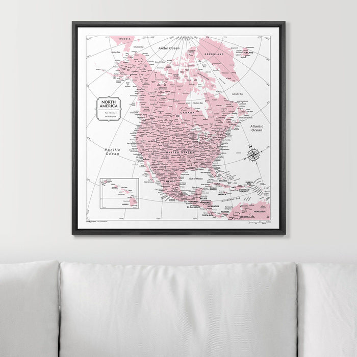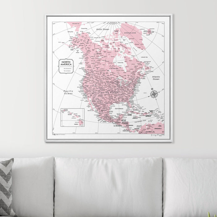 Push Pin North America Map (Pin Board) - Pink Color Splash