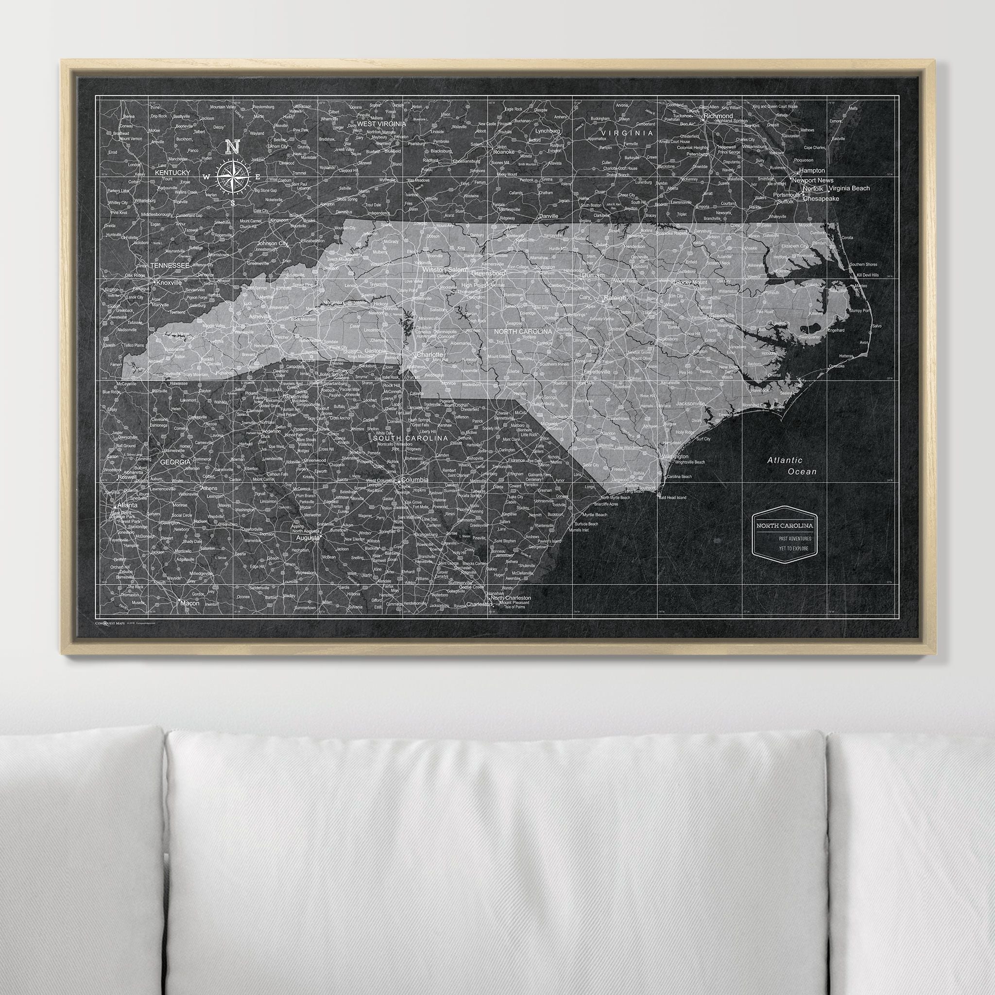 Choose from a selection of gorgeous wood frame styles to upgrade your map into a sophisticated and functional work of art.
