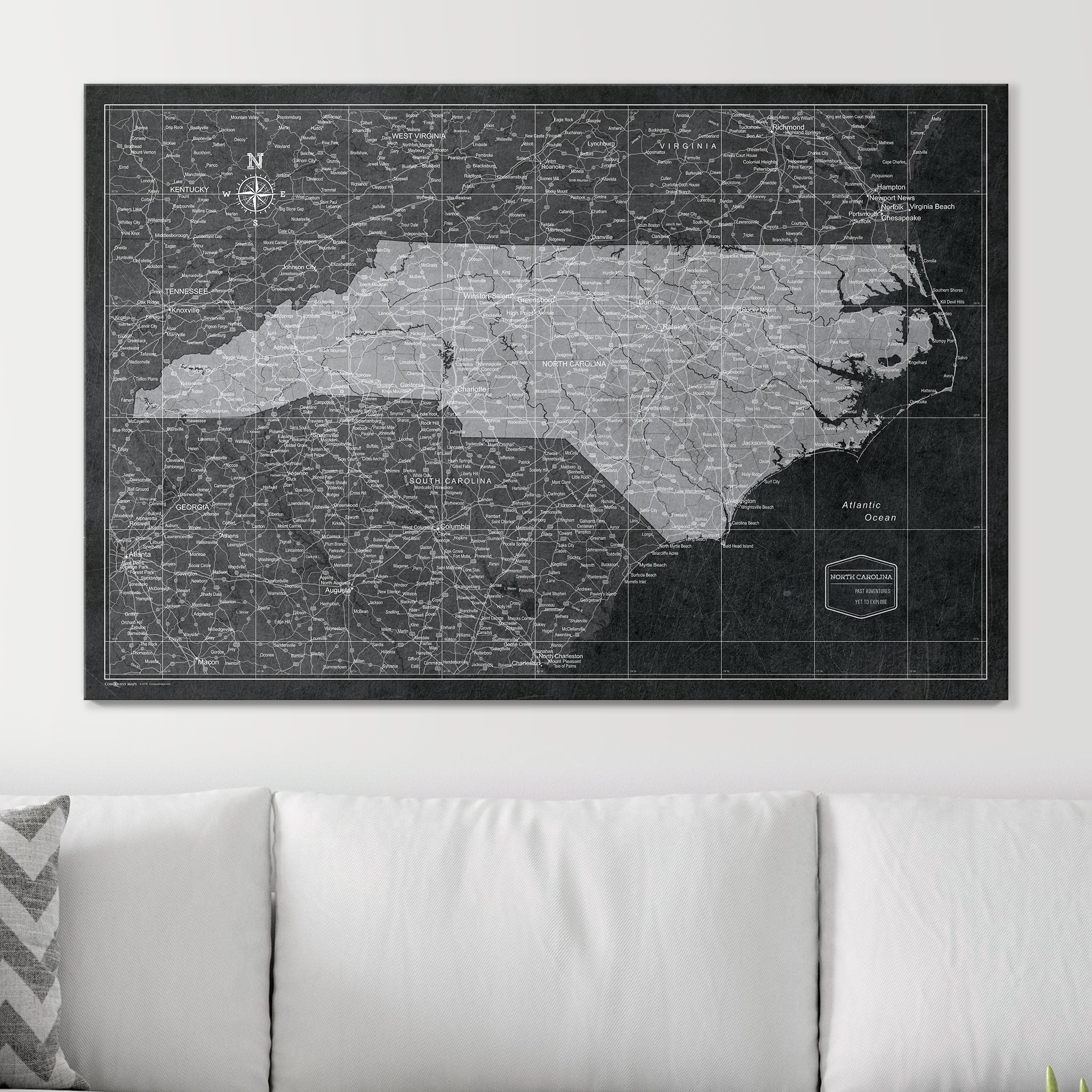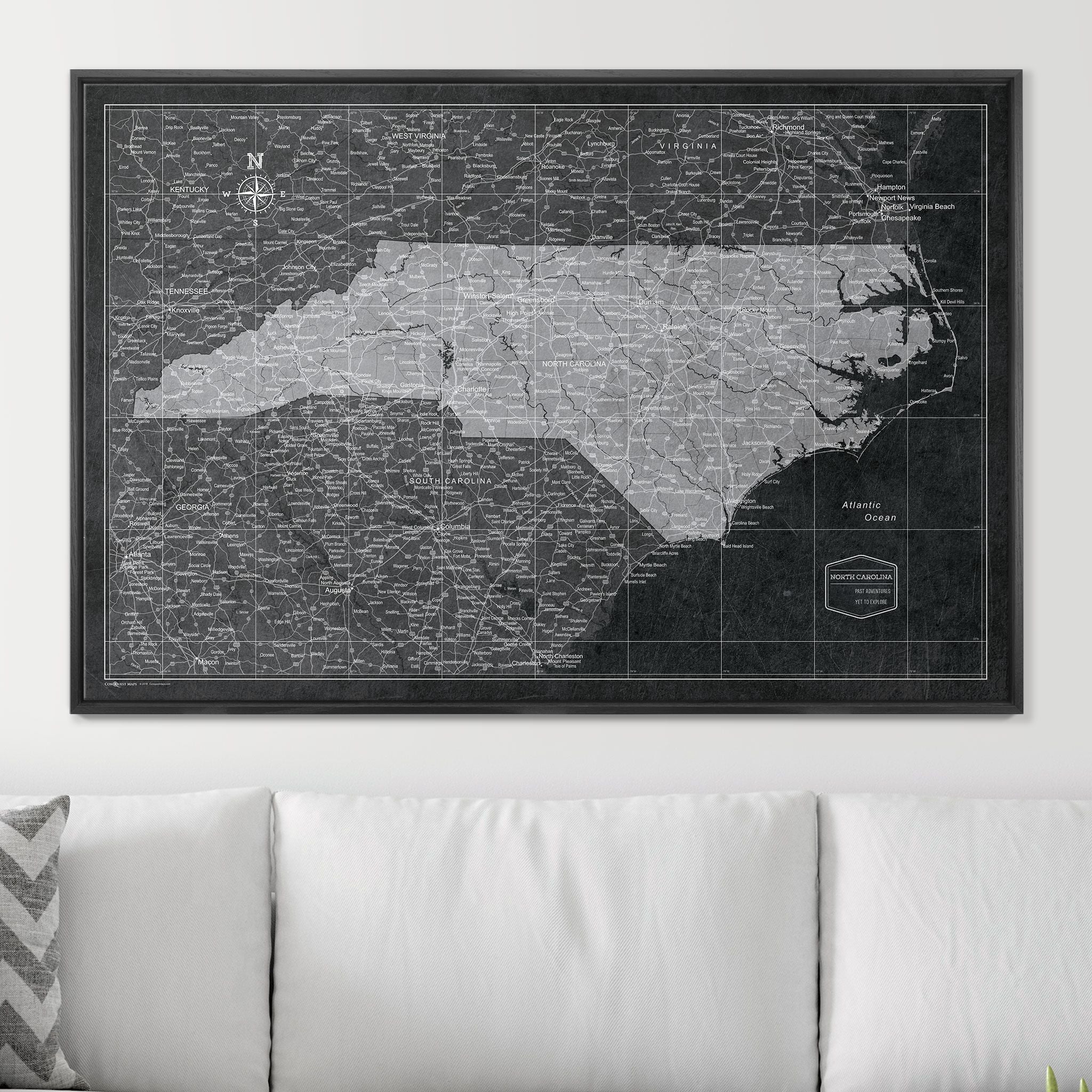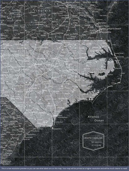 Push Pin North Carolina Map (Pin Board) - Modern Slate