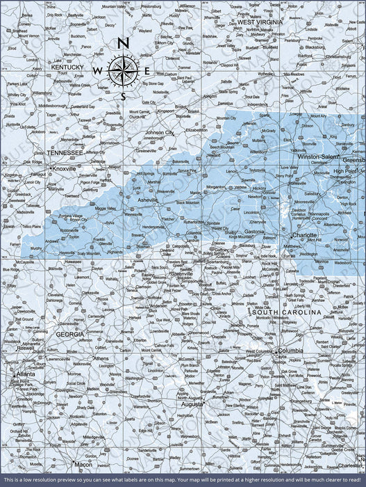 Push Pin North Carolina Map (Pin Board) - Light Blue Color Splash