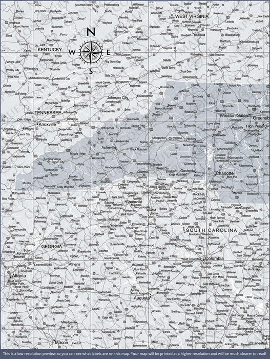 Push Pin North Carolina Map (Pin Board) - Light Gray Color Splash