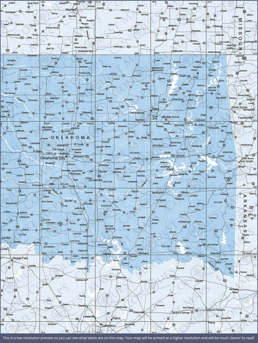 Push Pin Oklahoma Map (Pin Board) - Light Blue Color Splash