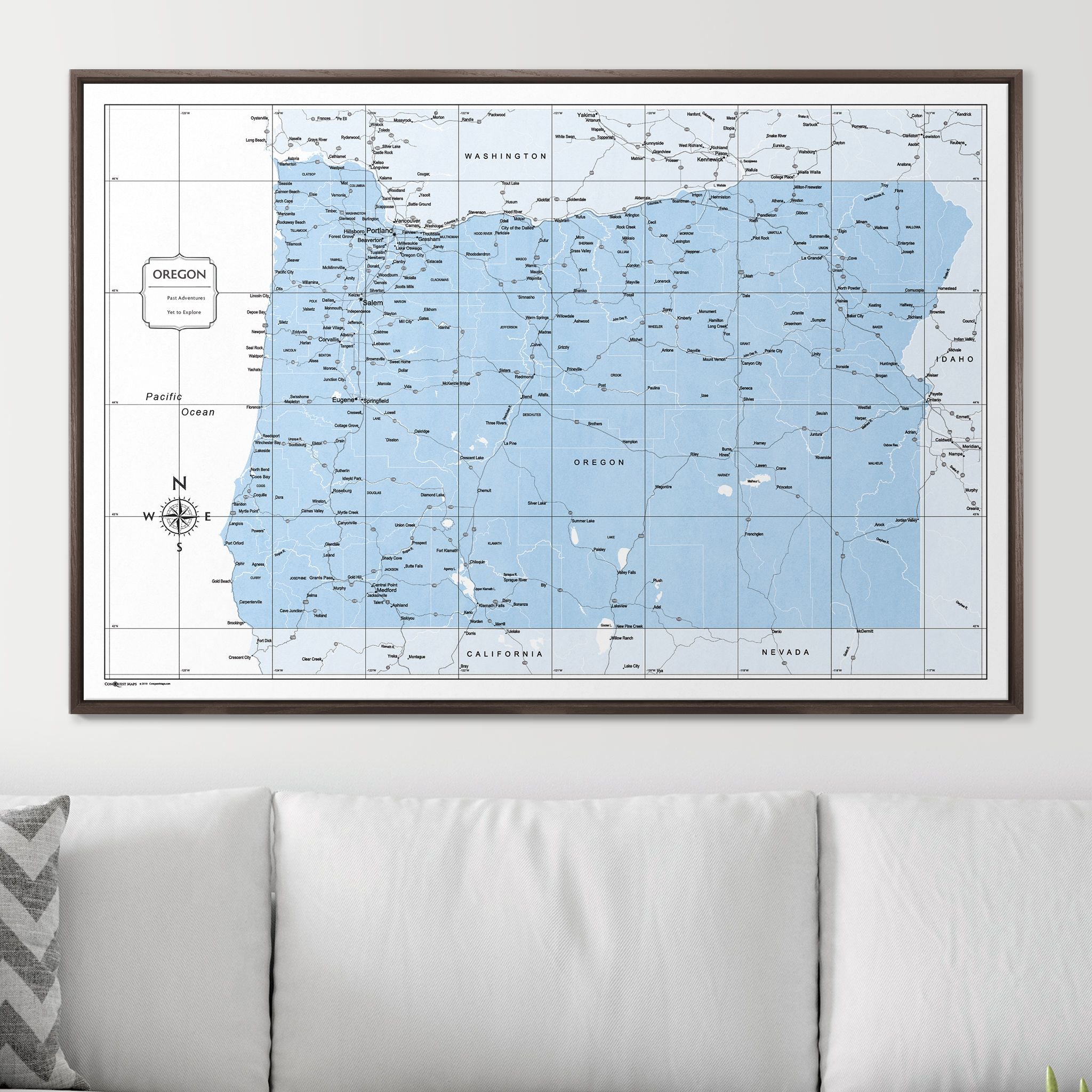 Push Pin Oregon Map (Pin Board) - Light Blue Color Splash