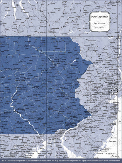 Push Pin Pennsylvania Map (Pin Board) - Navy Color Splash