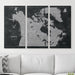 Our push pin travel maps are printed on premium stretched canvas and wrapped around an internal wood frame. There is a durable ½” layer of eco-friendly wood fiber pin board in between this internal piece and the canvas map print, so that when you place pins, they stay snugly in place.
