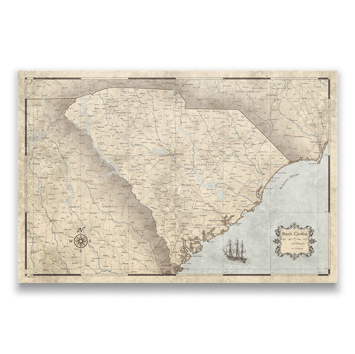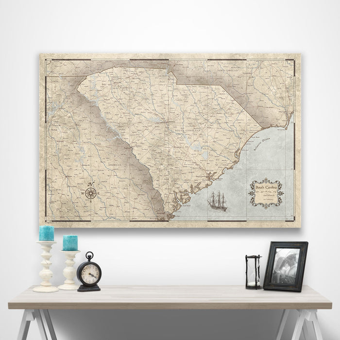 Push Pin South Carolina Map (Pin Board) - Rustic Vintage