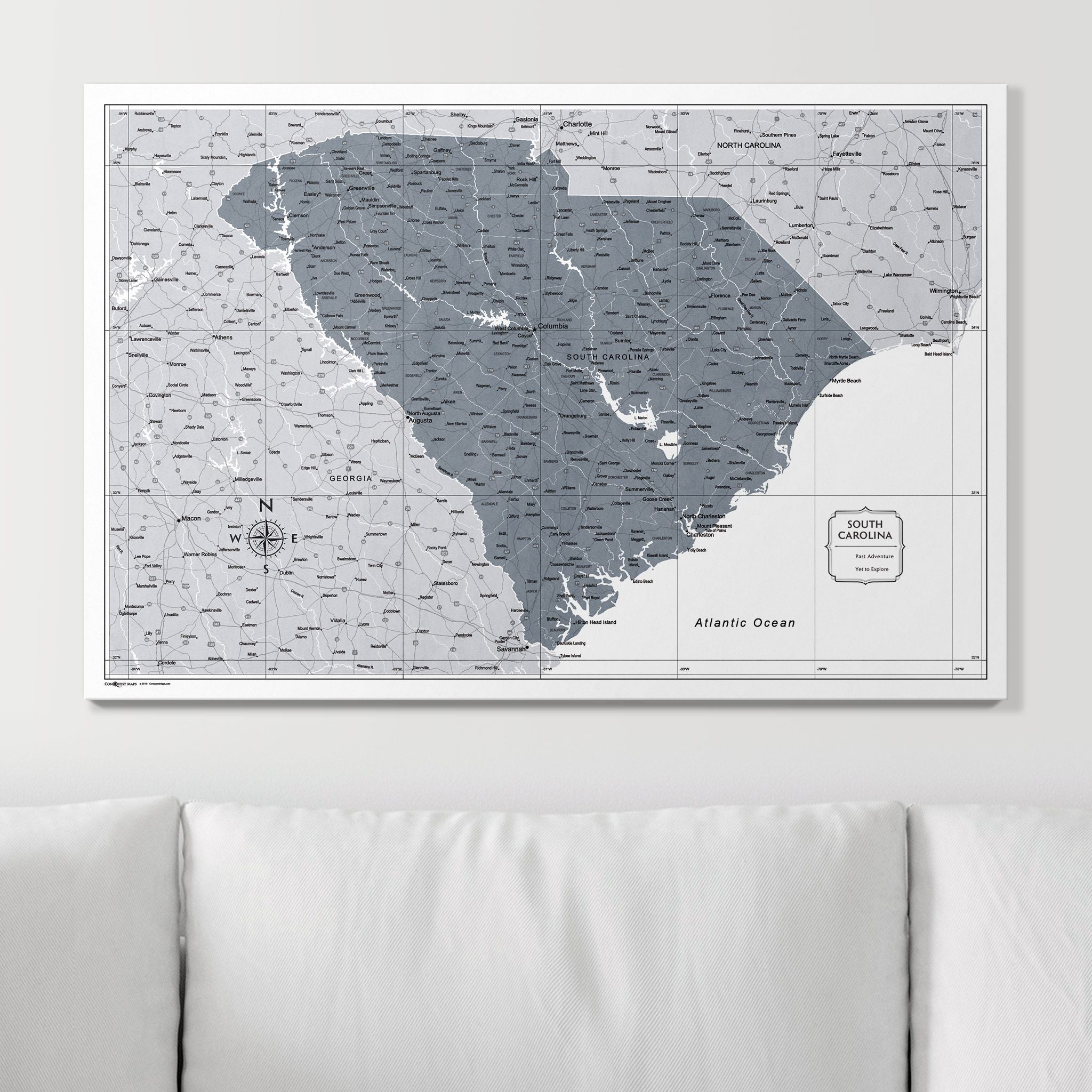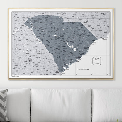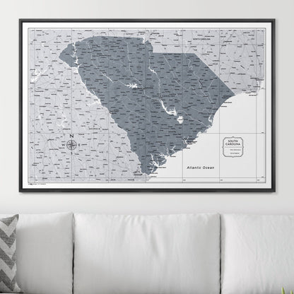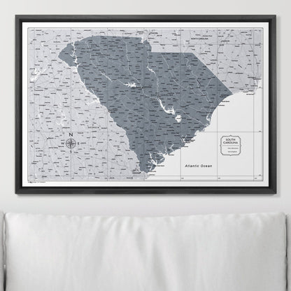 Push Pin South Carolina Map (Pin Board) - Dark Gray Color Splash