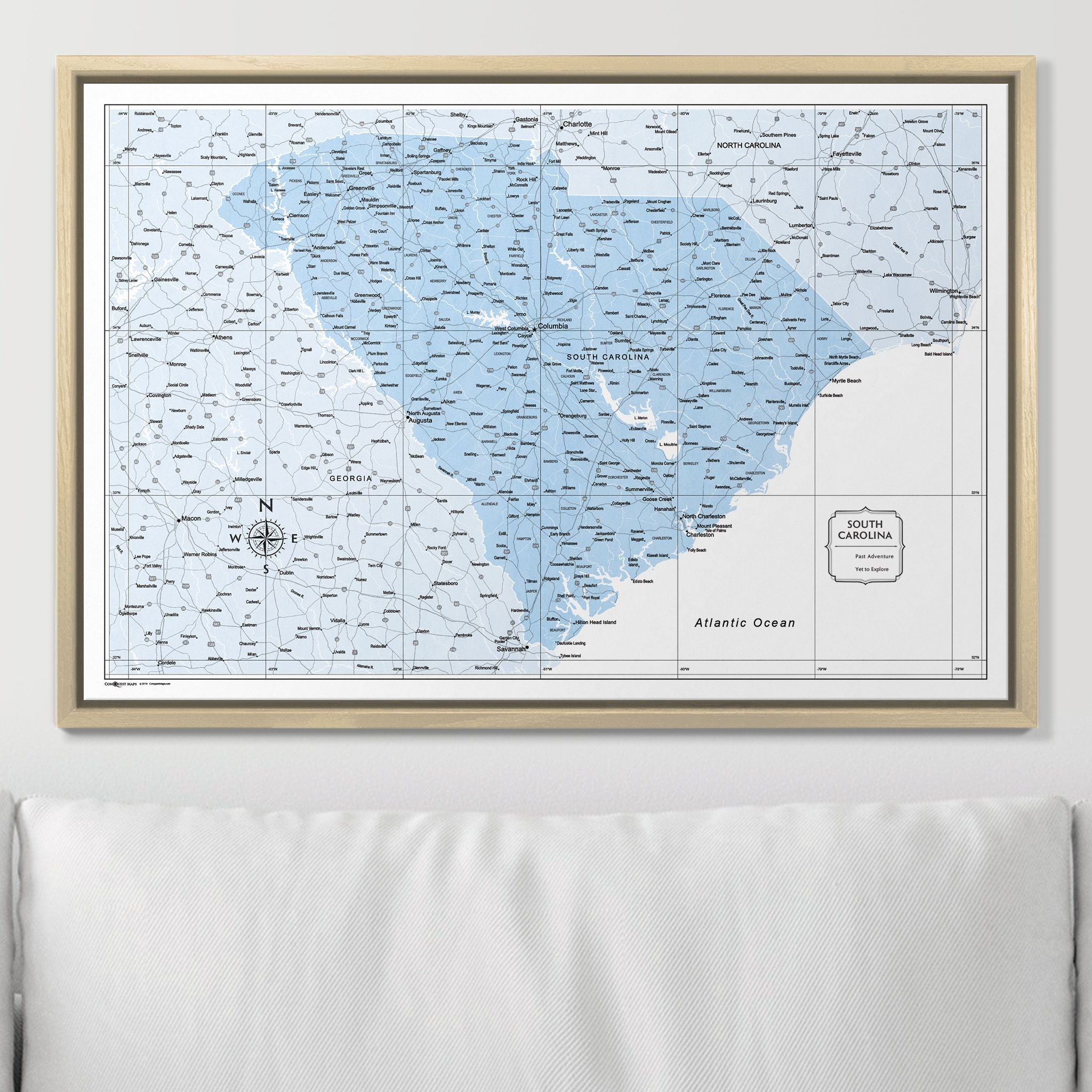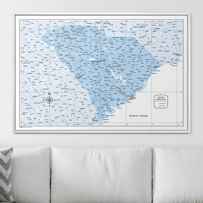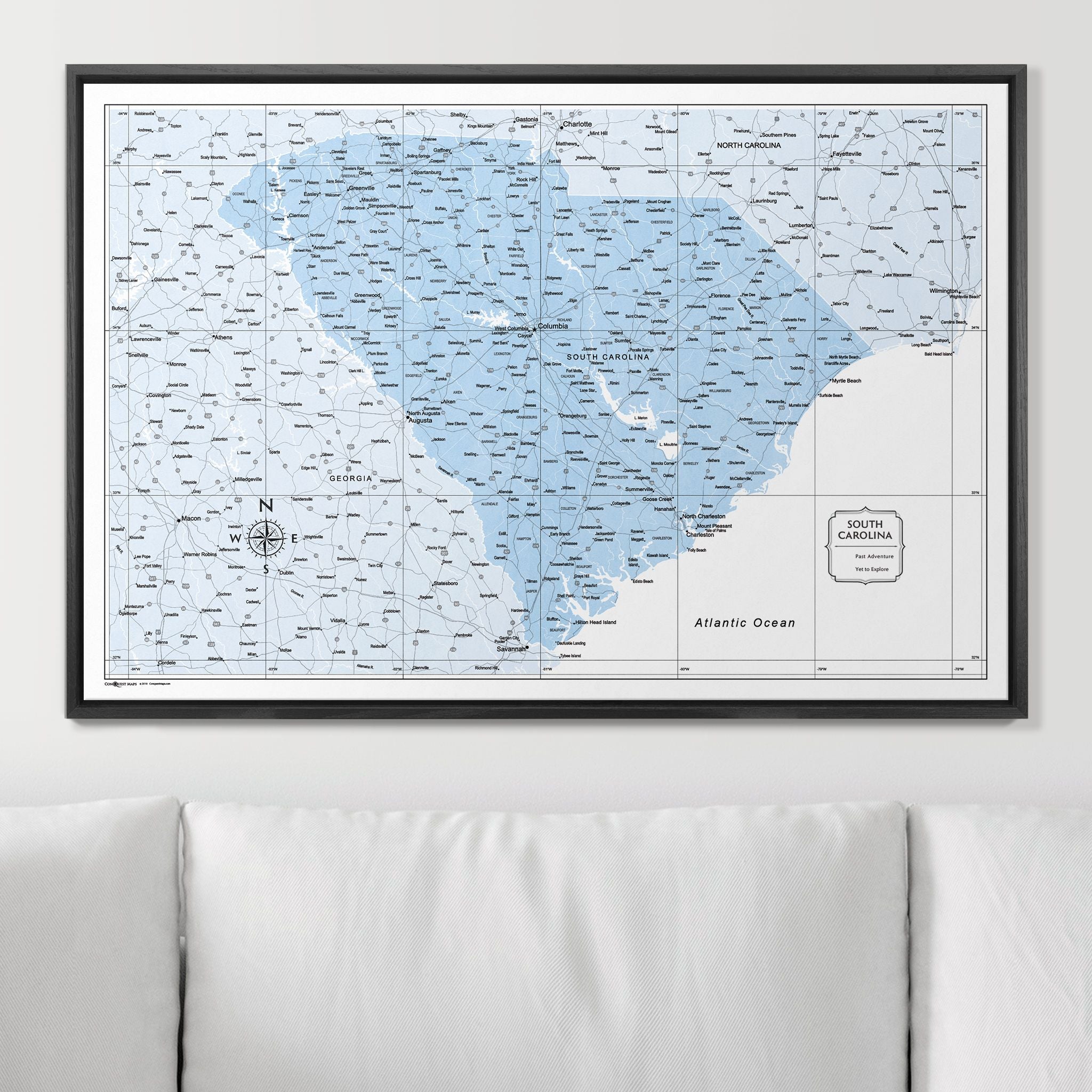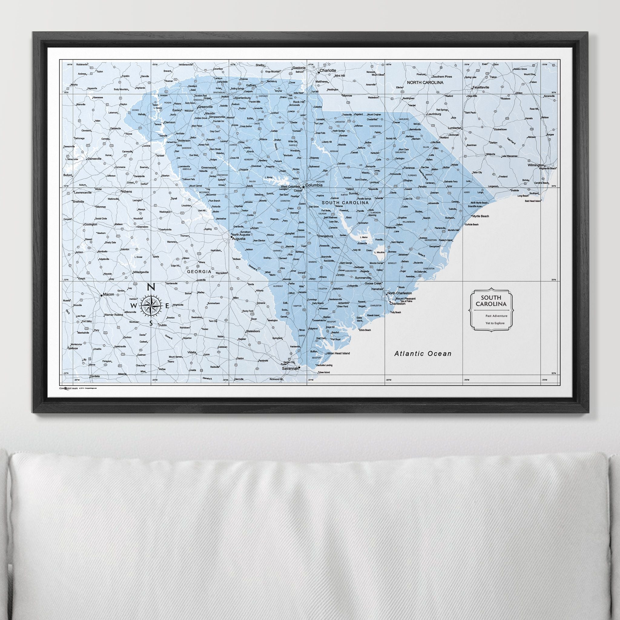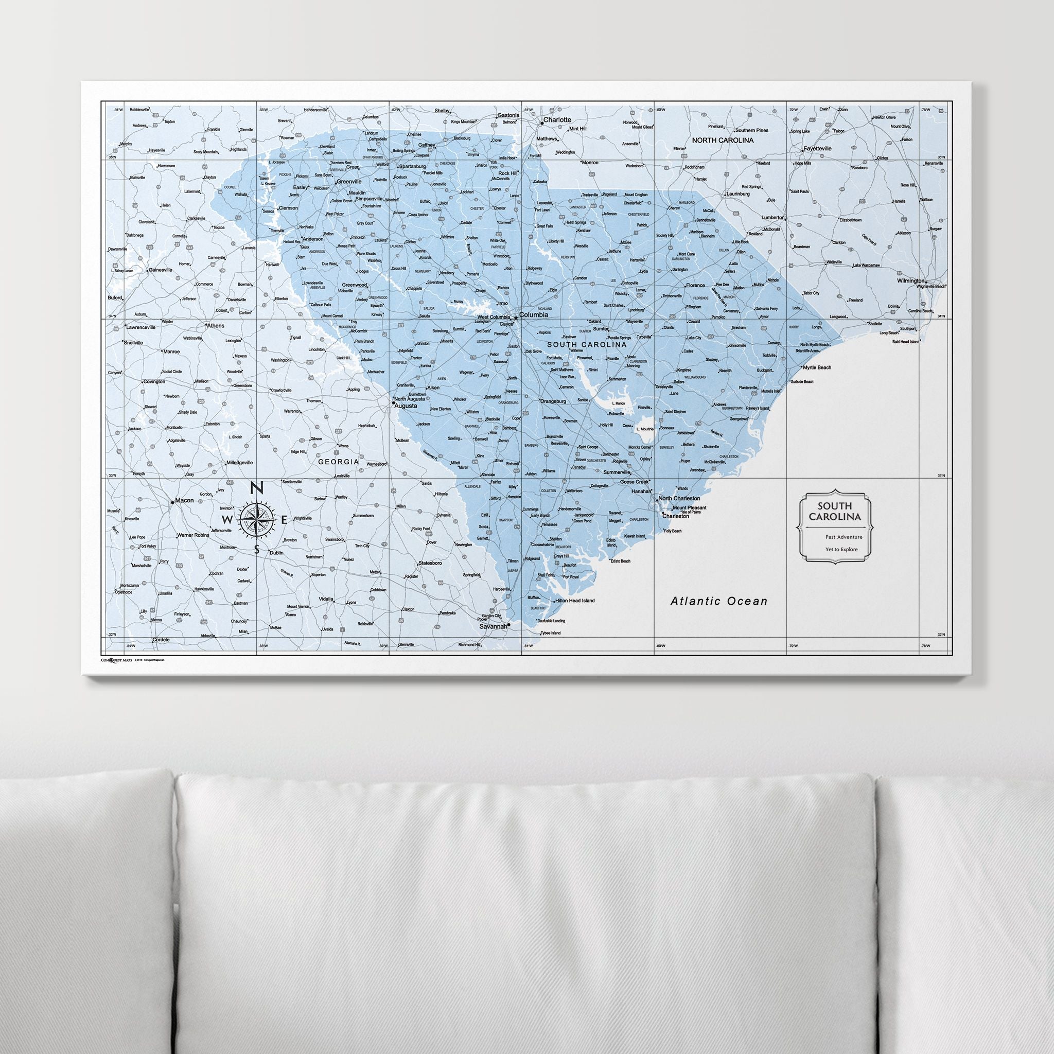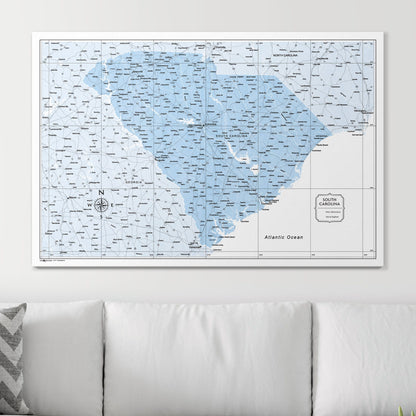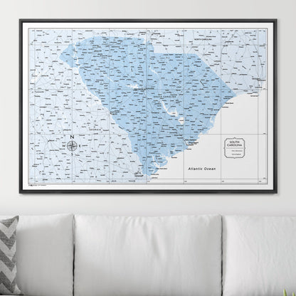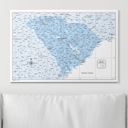 Push Pin South Carolina Map (Pin Board) - Light Blue Color Splash
