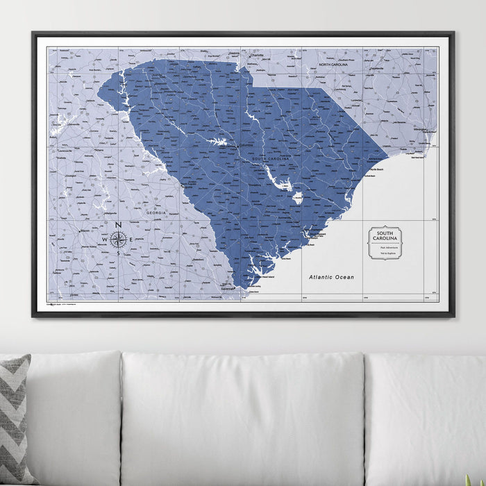 Push Pin South Carolina Map (Pin Board) - Navy Color Splash