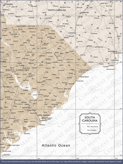 Push Pin South Carolina Map (Pin Board) - Light Brown Color Splash
