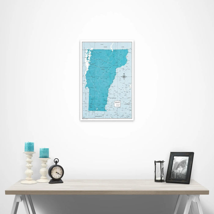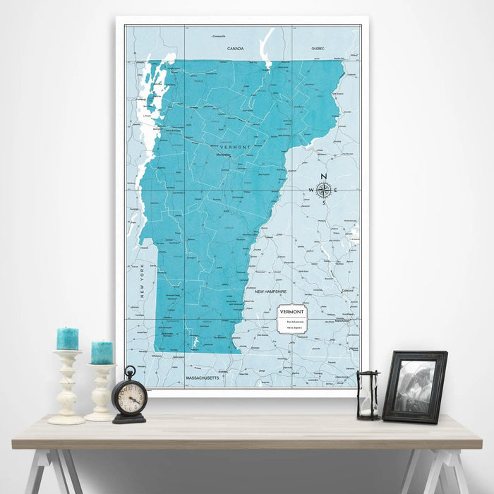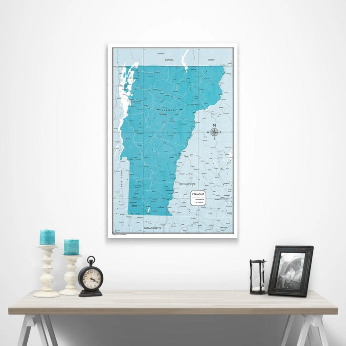 Push Pin Vermont Map (Pin Board) - Teal Color Splash
