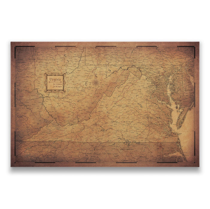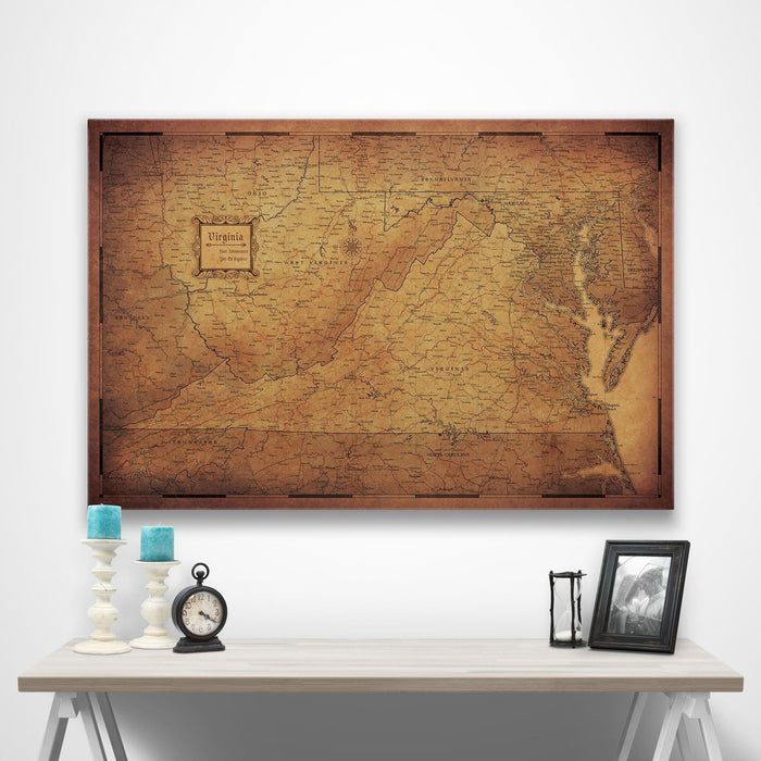 Push Pin Virginia Map (Pin Board) - Golden Aged