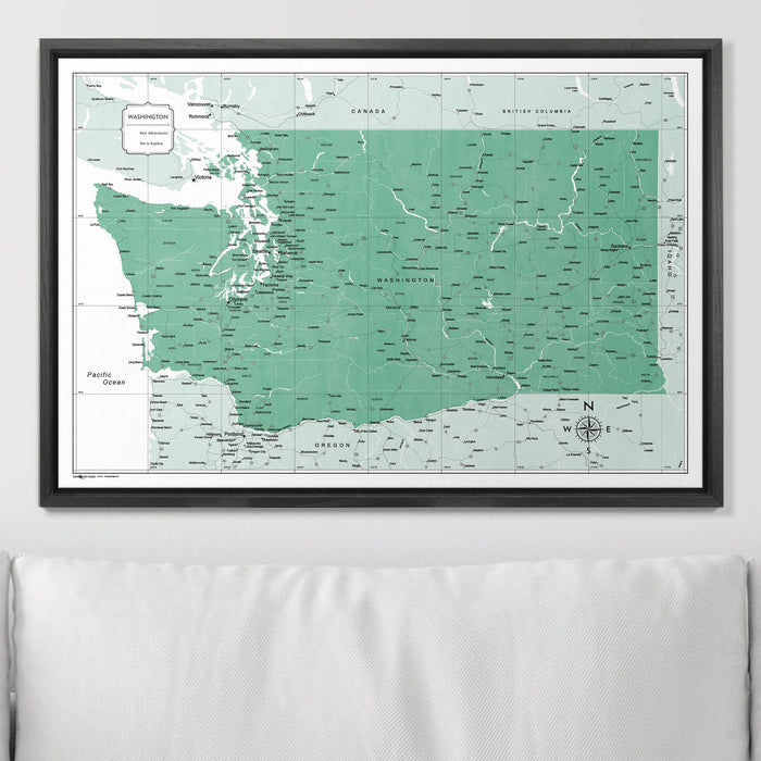 Push Pin Washington Map (Pin Board) - Green Color Splash