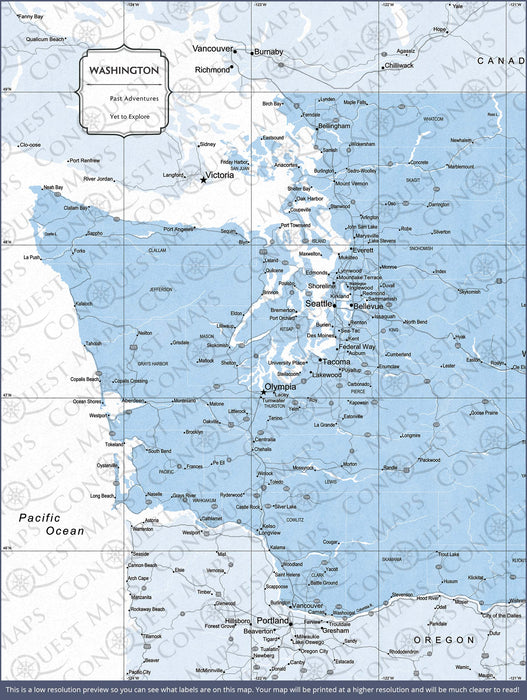 Push Pin Washington Map (Pin Board) - Light Blue Color Splash