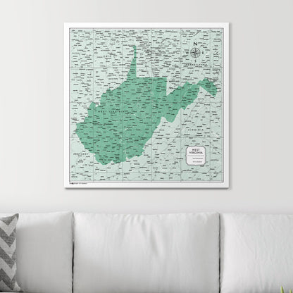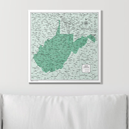 Push Pin West Virginia Map (Pin Board) - Green Color Splash