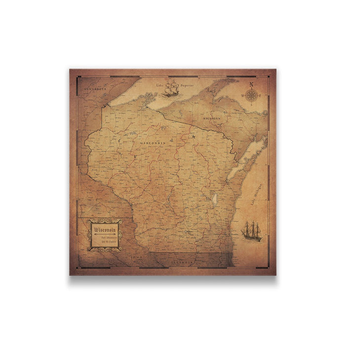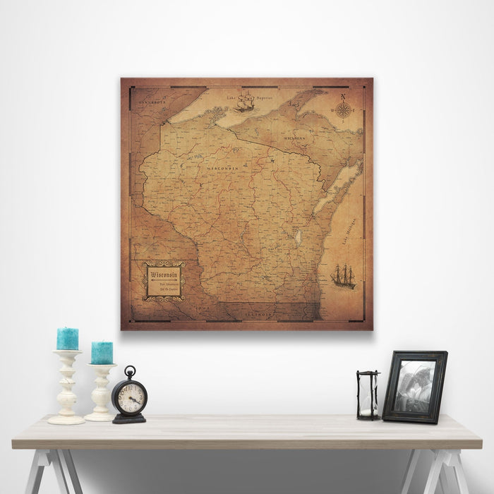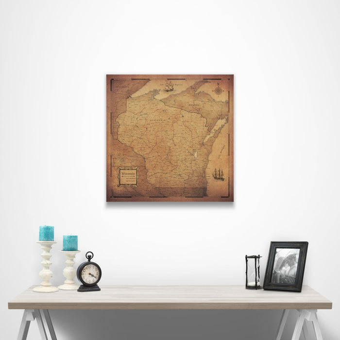 Push Pin Wisconsin Map (Pin Board) - Golden Aged