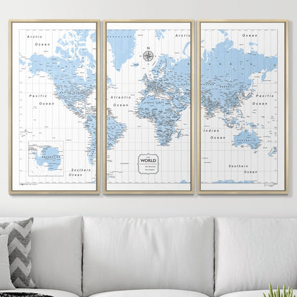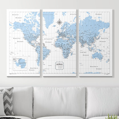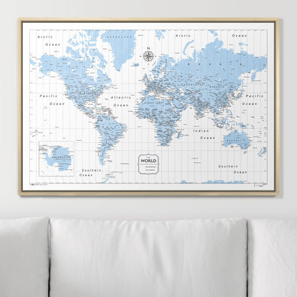 Push Pin World Map (Pin Board) - Light Blue Color Splash