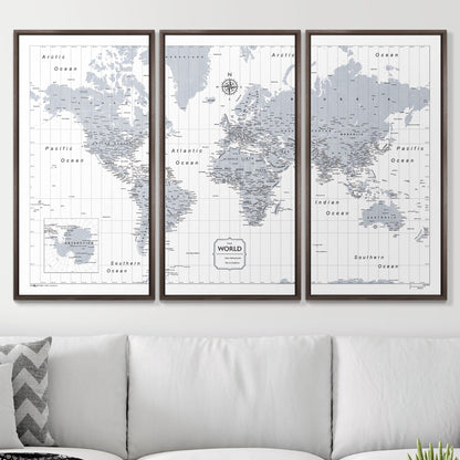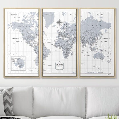 Push Pin World Map (Pin Board) - Light Gray Color Splash