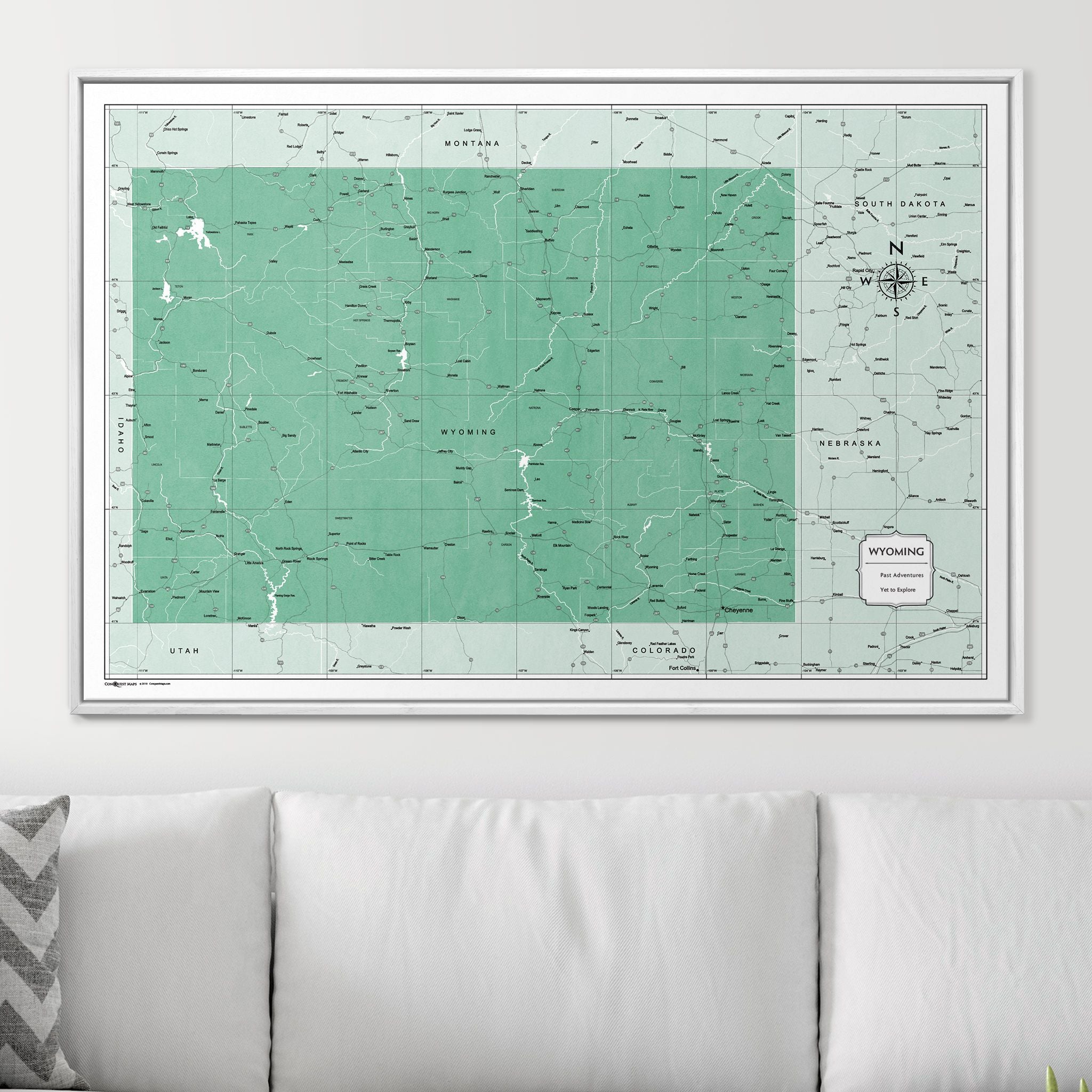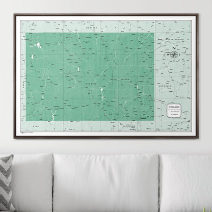 Push Pin Wyoming Map (Pin Board) - Green Color Splash